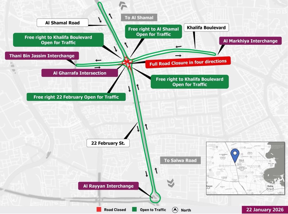 The closure affects all directions of the interchange, prompting Ashghal to urge motorists to exercise caution, adhere to posted speed limits, and utilize the designated diversion routes. Drivers are also encouraged to consider alternative routes through nearby streets to mitigate potential delays. A map detailing the diversions has been released by Ashghal to assist road users.